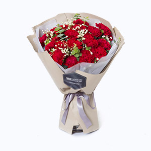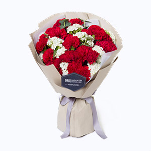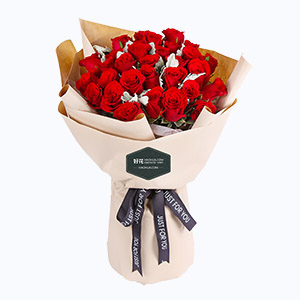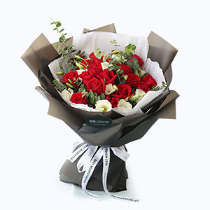 共度愛河-19枝紅玫瑰+白桔梗花鮮花花束