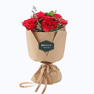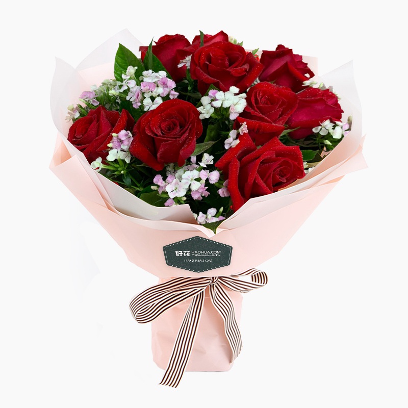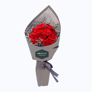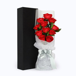兒女情長-9枝紅玫瑰+梔子葉韓式鮮花花束