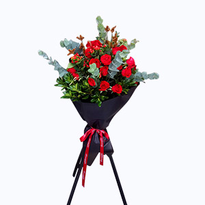 心甘情愿-13枝紅玫瑰+尤加利葉鮮花花束