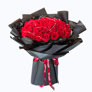 熱情如火-33枝紅玫瑰+夢幻黑紗鮮花花束
